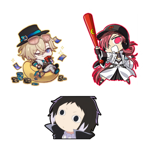 | Bungo Stray Dogs, Honkai Star Rail, Fate Grand Order, Genshin Impact, Type Moon, Owari no Seraph, Madoka Magica, Sword Art Online, Danganronpa, Your Turn To Die, Otome Games, etc. |